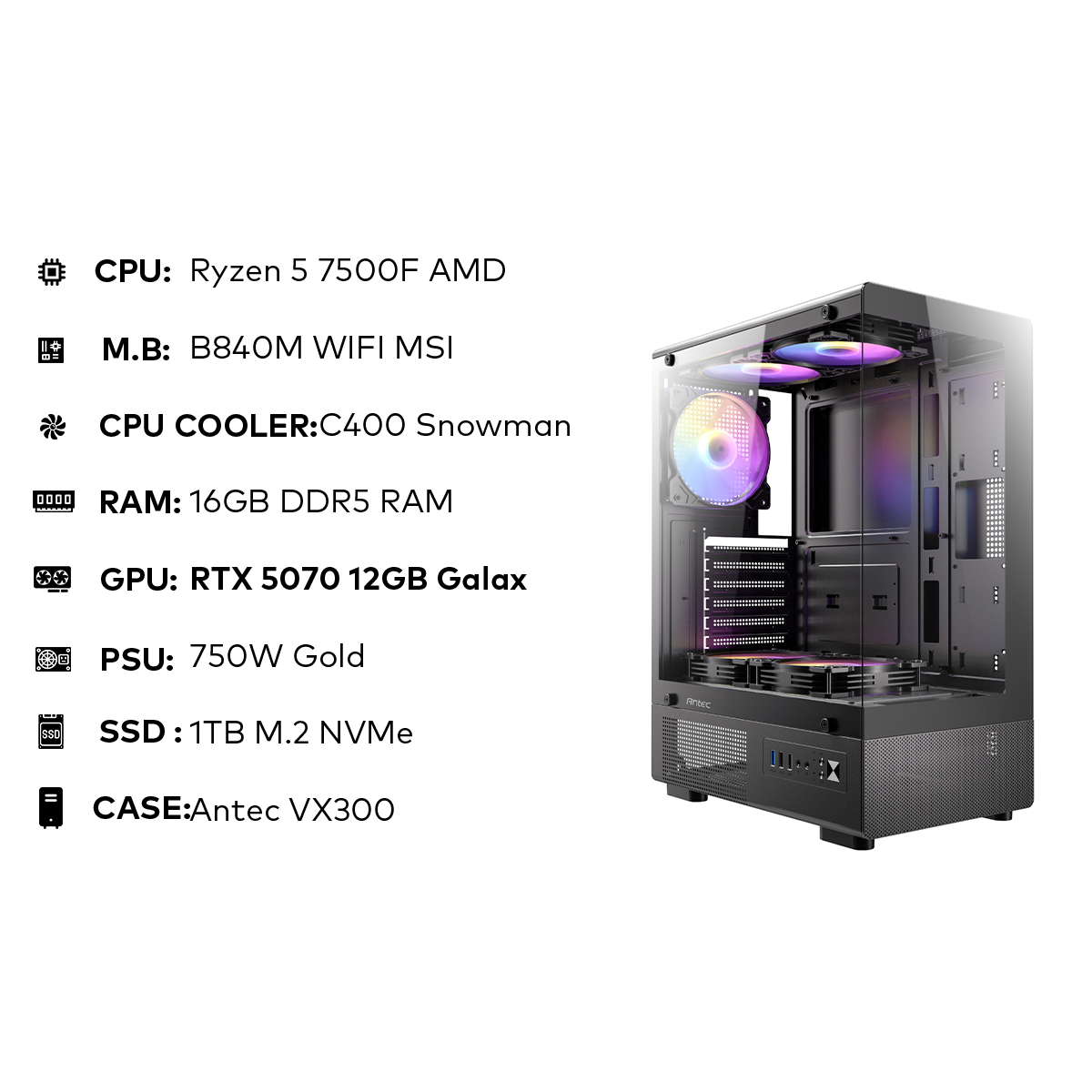 - كمبيوتر ألعاب احترافي بمعالج رايزن 5 وكرت RTX 5070 مع تقنية DDR5 كمبيوتر ألعاب احترافي بمعالج رايزن 5 وكرت RTX 5070 مع تقنية DDR5